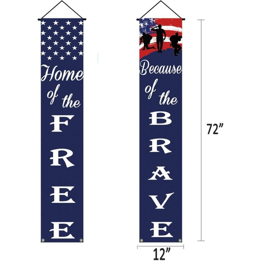 1set/2pcs; American Flag Patriotic Soldier Porch Sign Banners; Patriotic Decoration For Memorial Day-4th Of July; Independence Day Veterans Day Labor