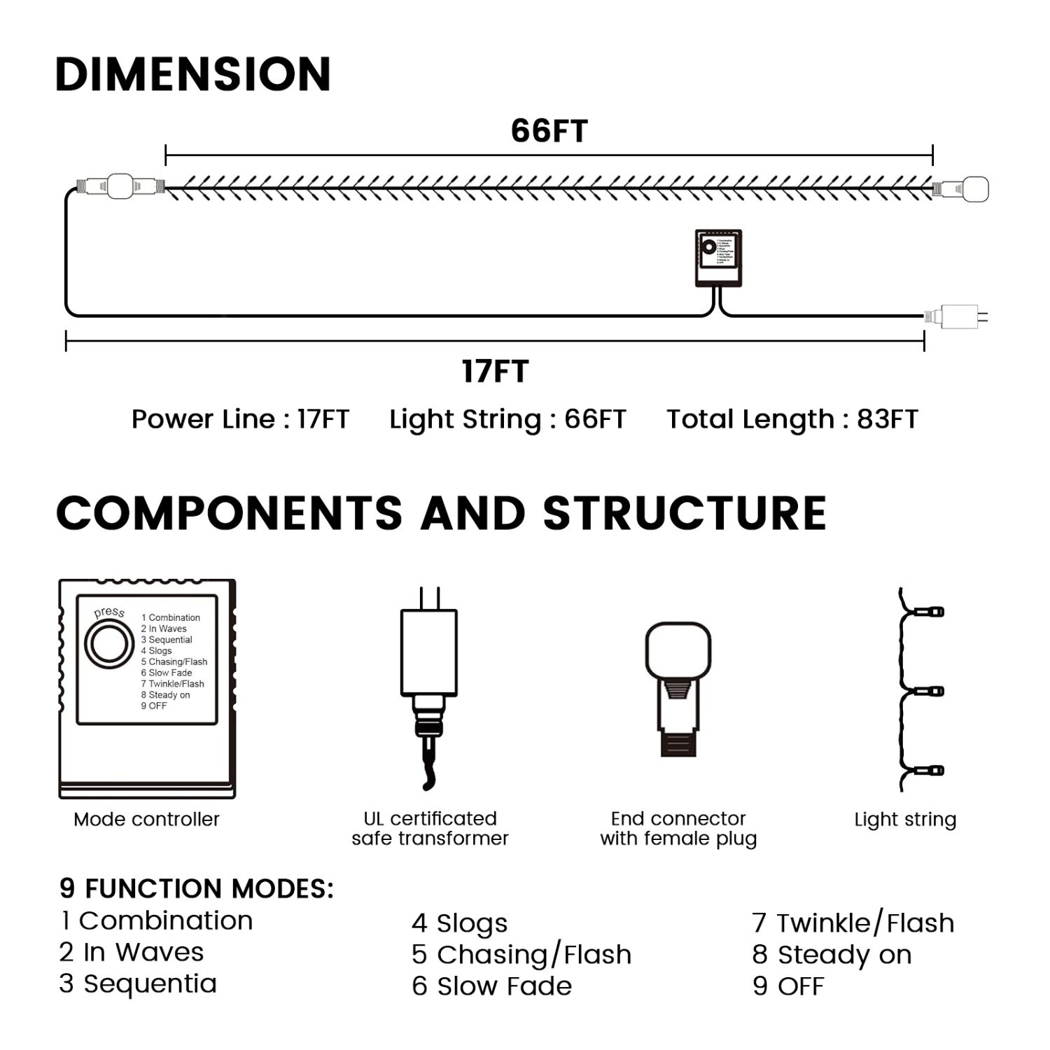 These versatile LED string lights span an impressive 66 feet, with an additional 17 feet of power cord, making the total length 83 feet.