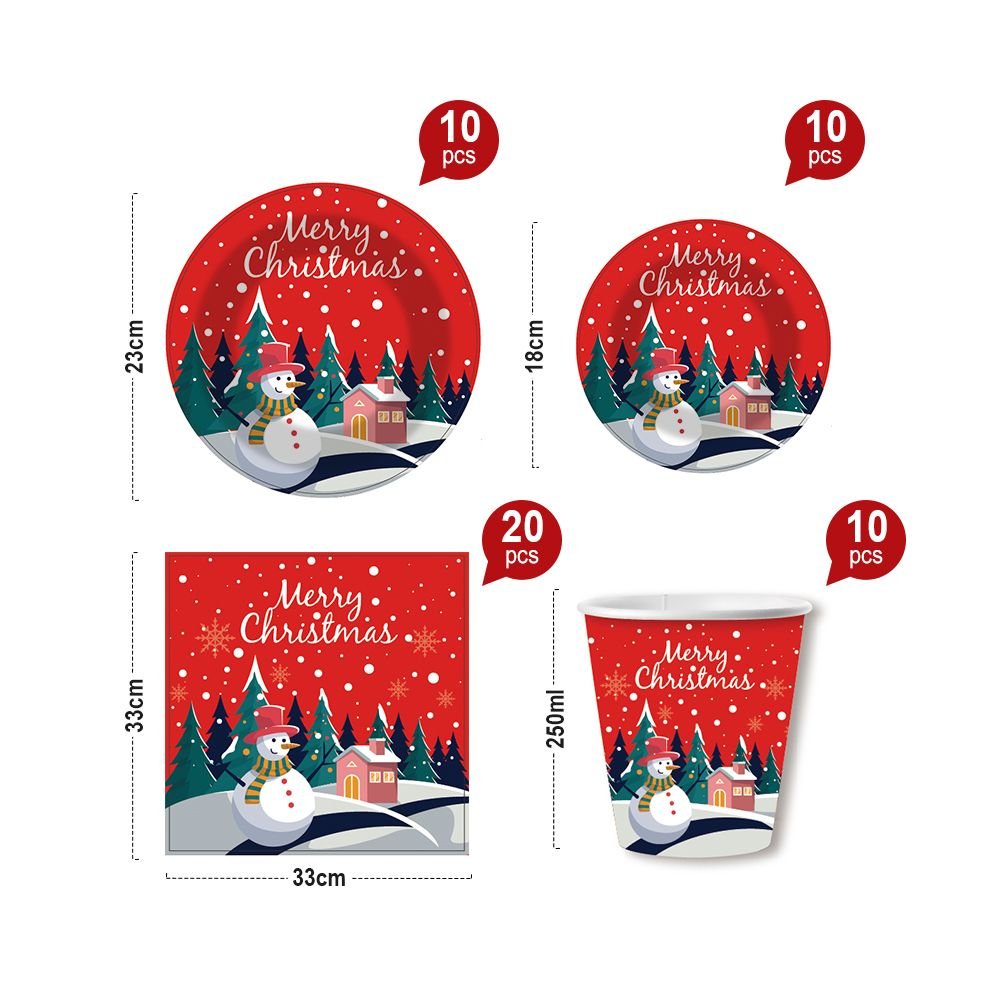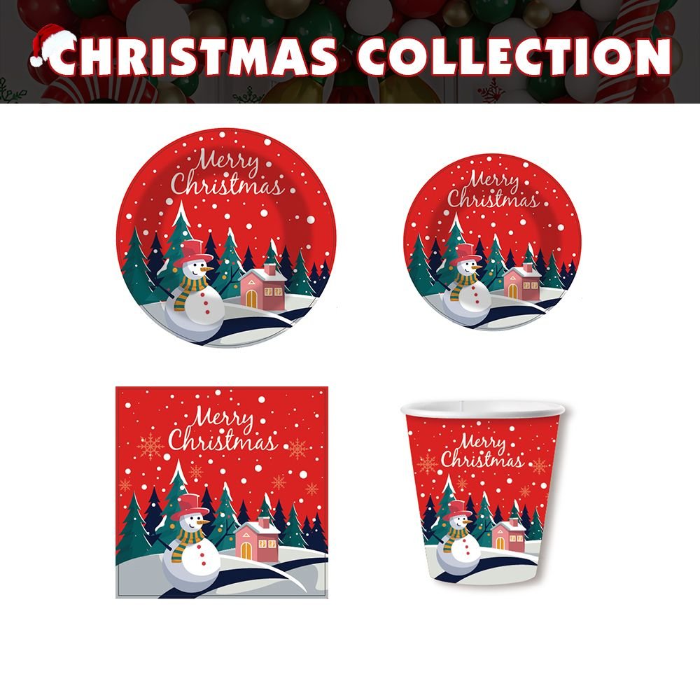 Home > 50pcs Christmas Dinnerware Set Party Supplies Snowman Disposable Tableware Paper Plates and Napkins Banners Plastic tablecloths Cutlery Serves 10 for