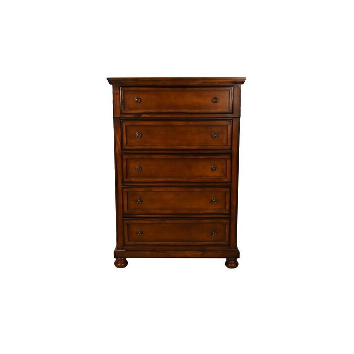 Five drawers offer ample storage space for clothing and belongings. Tongue and groove construction with English dovetail in the back ensure durability. Full extension ball bearing glides for smooth drawer operation.