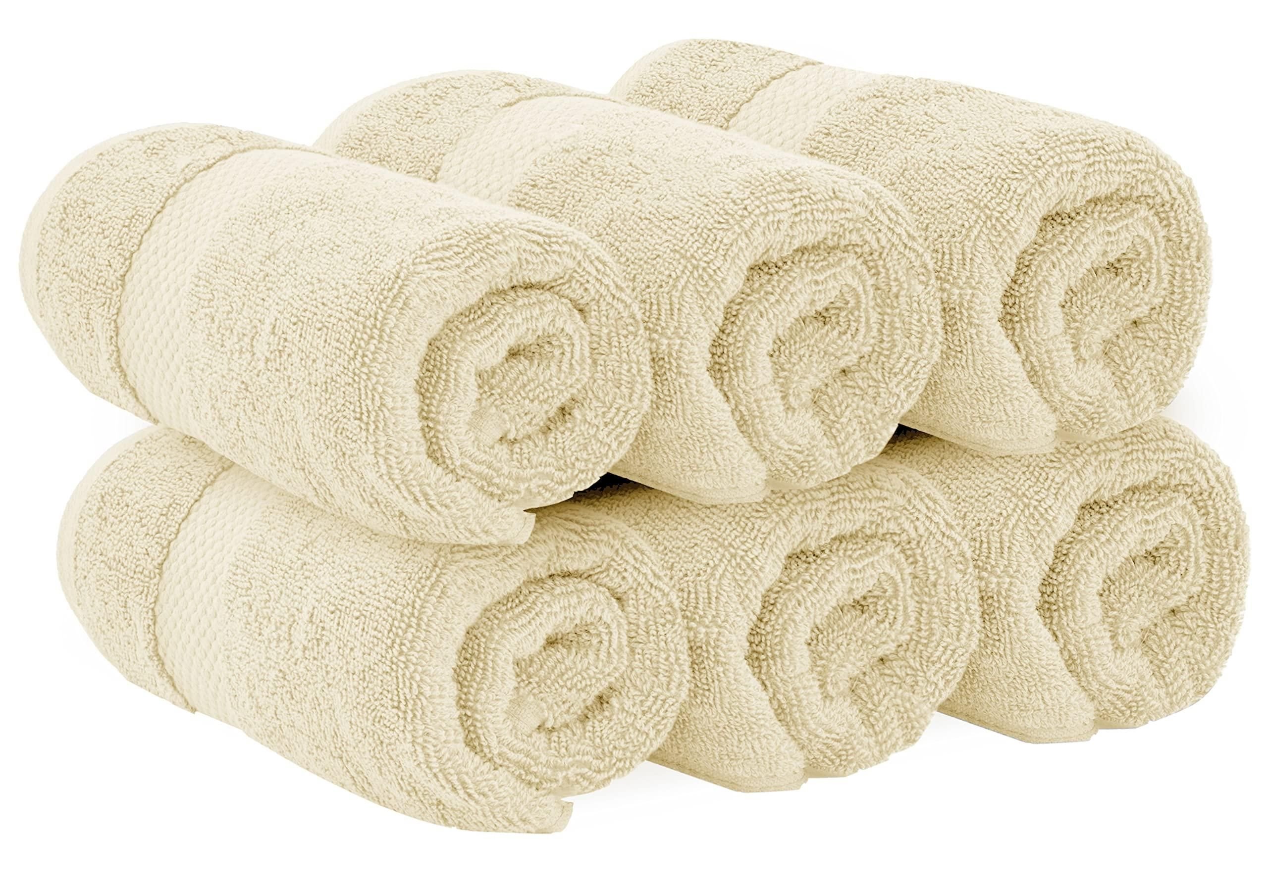 1.hotel collection - 6-piece hand towels are generously sized at 16x30 inches. each towel is 100% combed cotton - soft, durable, quick-dry, and wonderfully absorbent. it is more absorbent than any turkish cotton face towel.