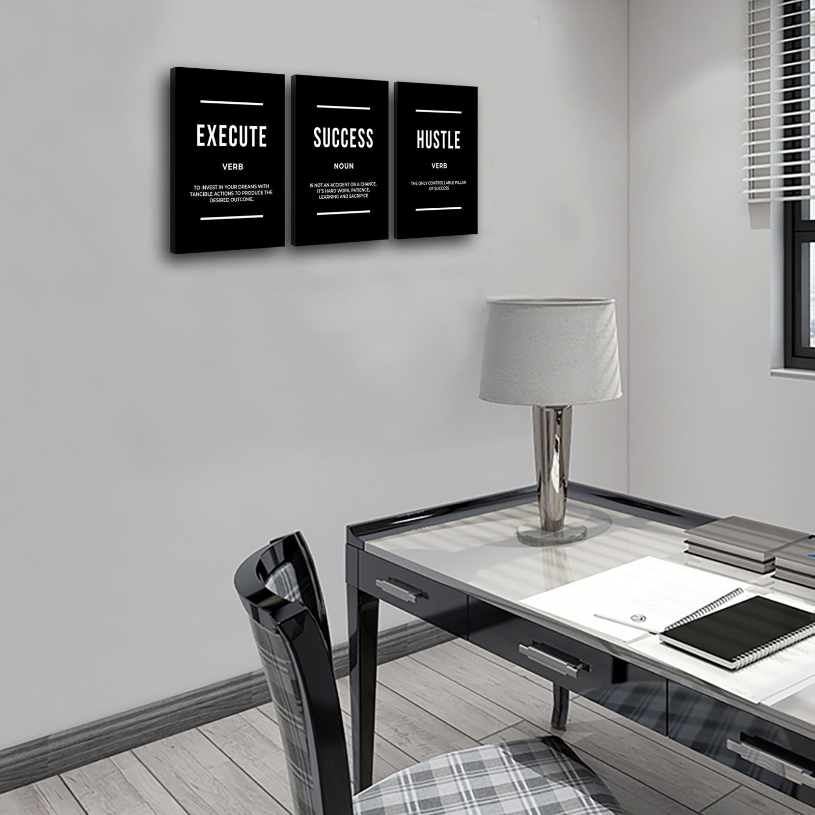 Motivational Wall Art Positive Quote Poster Canvas Painting Execute Success Hustle Inspirational Quotes Wall Art Office Wall Decor Pictures for Home L