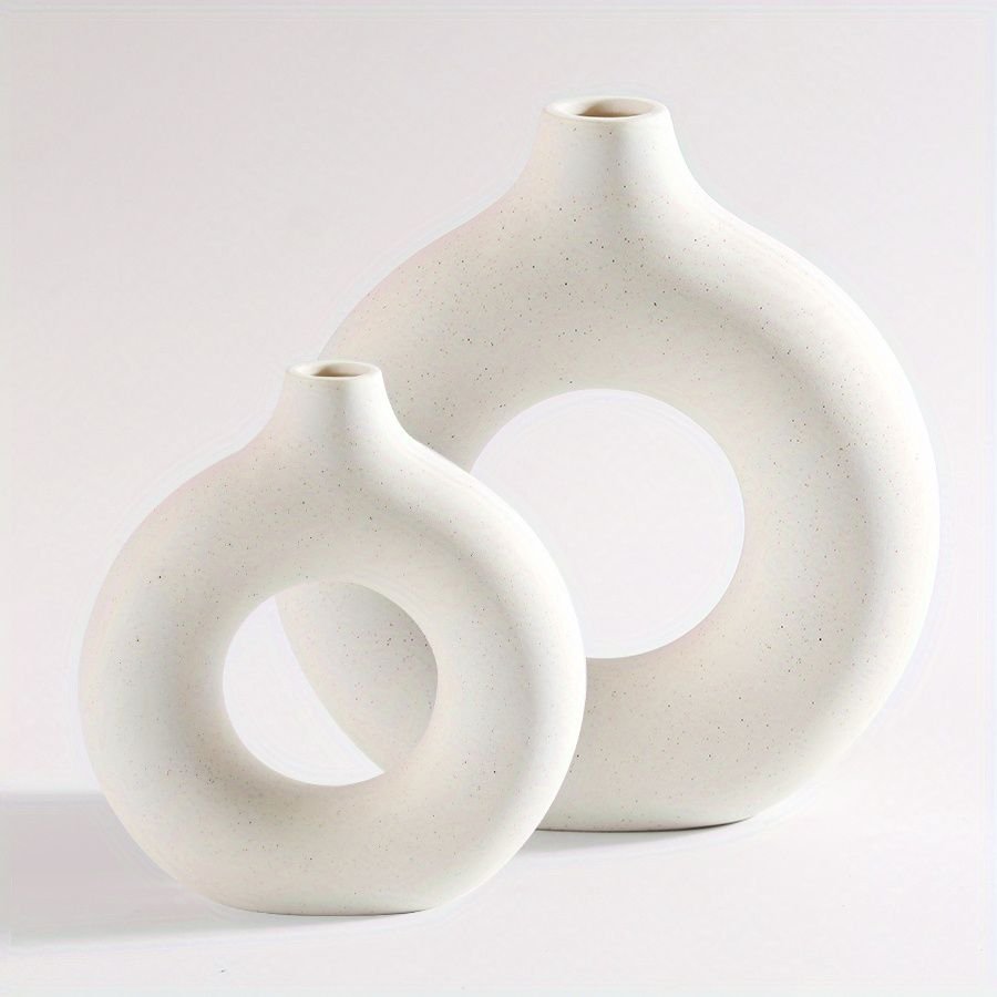 Home > 1pc; White Ceramic Vase White Vases For Decor; Modern Home Decor Vase; Boho Vases For Decor; Circle Vase; Round Vase; Donut Vase; Decorative Vase
