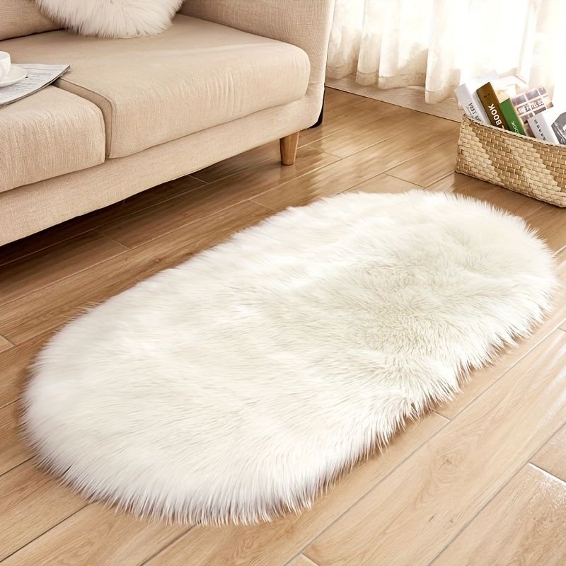 Home > 1pc Super Soft Area Rug, Plush Fluffy Faux Sheepskin Oval Floor Mat For Living Room Bedroom, Machine Washable Bedside Rugs