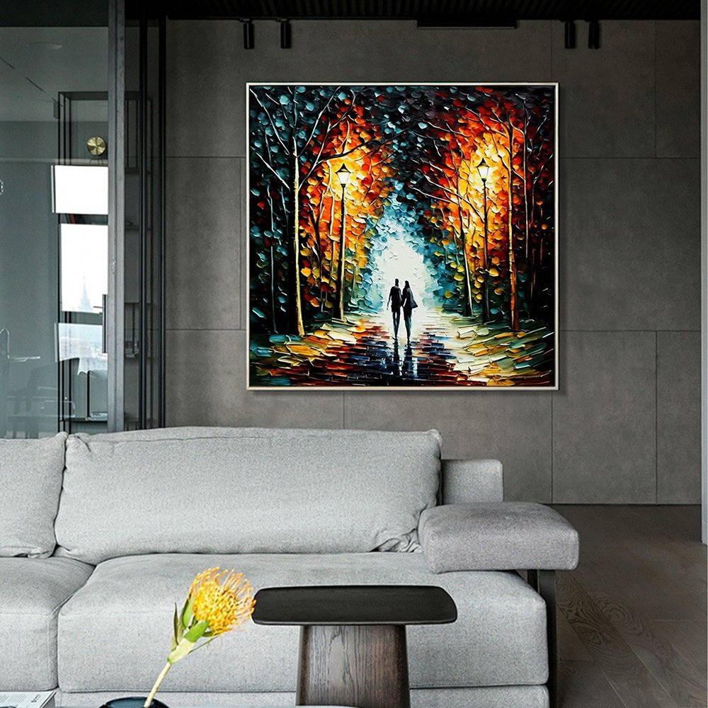 Hand Painted Oil Painting Original Romantic Cityscape Oil Painting On Canvas Large Wall Art Abstract Colorful Forest Painting Custom Tree Painting Bed