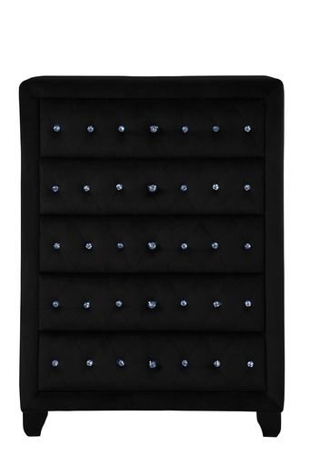 Enhance your bedroom organization with the 5-Drawer Chest. Featuring five spacious drawers with crystal accents, this chest offers both style and utility. Its modern design and wood construction ensure it's a lasting addition to your bedroom.