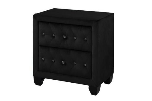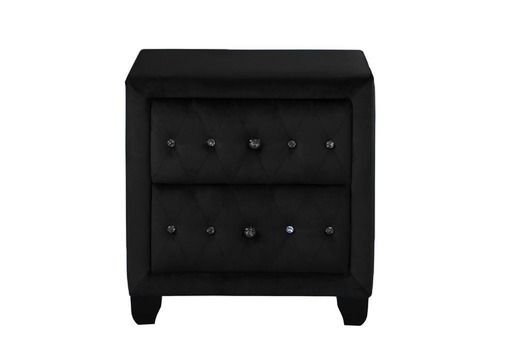 The 2-Drawer Nightstand combines functionality with sophistication. Its two spacious drawers and crystal-accented drawer pulls provide ample storage and a touch of elegance. Its sleek, modern design makes it a versatile addition to any bedroom decor.