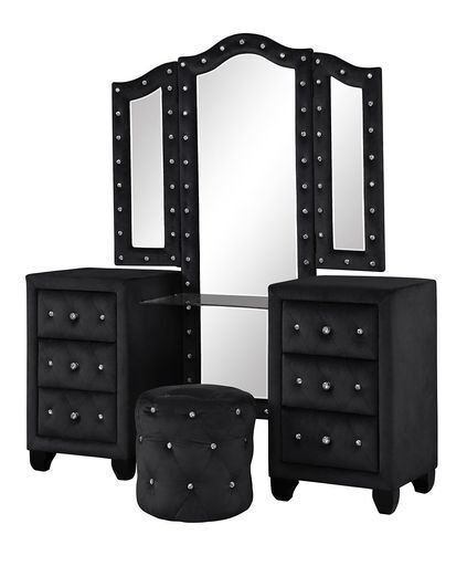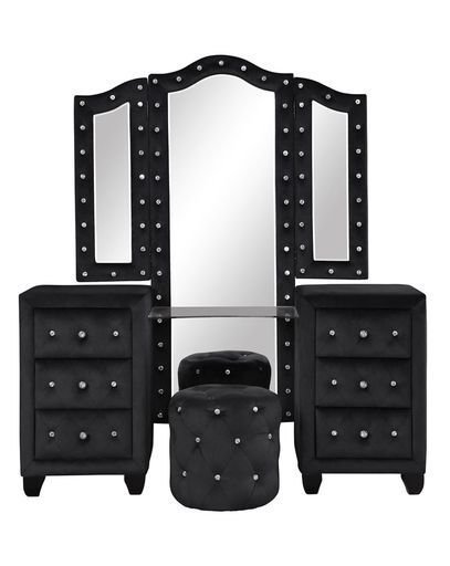 Sophia VanityThe vanity set is a statement piece that combines functionality with opulent design to transform your bedroom into a luxurious retreat. Crafted with precision, it features six spacious drawers, offering ample storage for cosmetics, jewelry, and personal items.