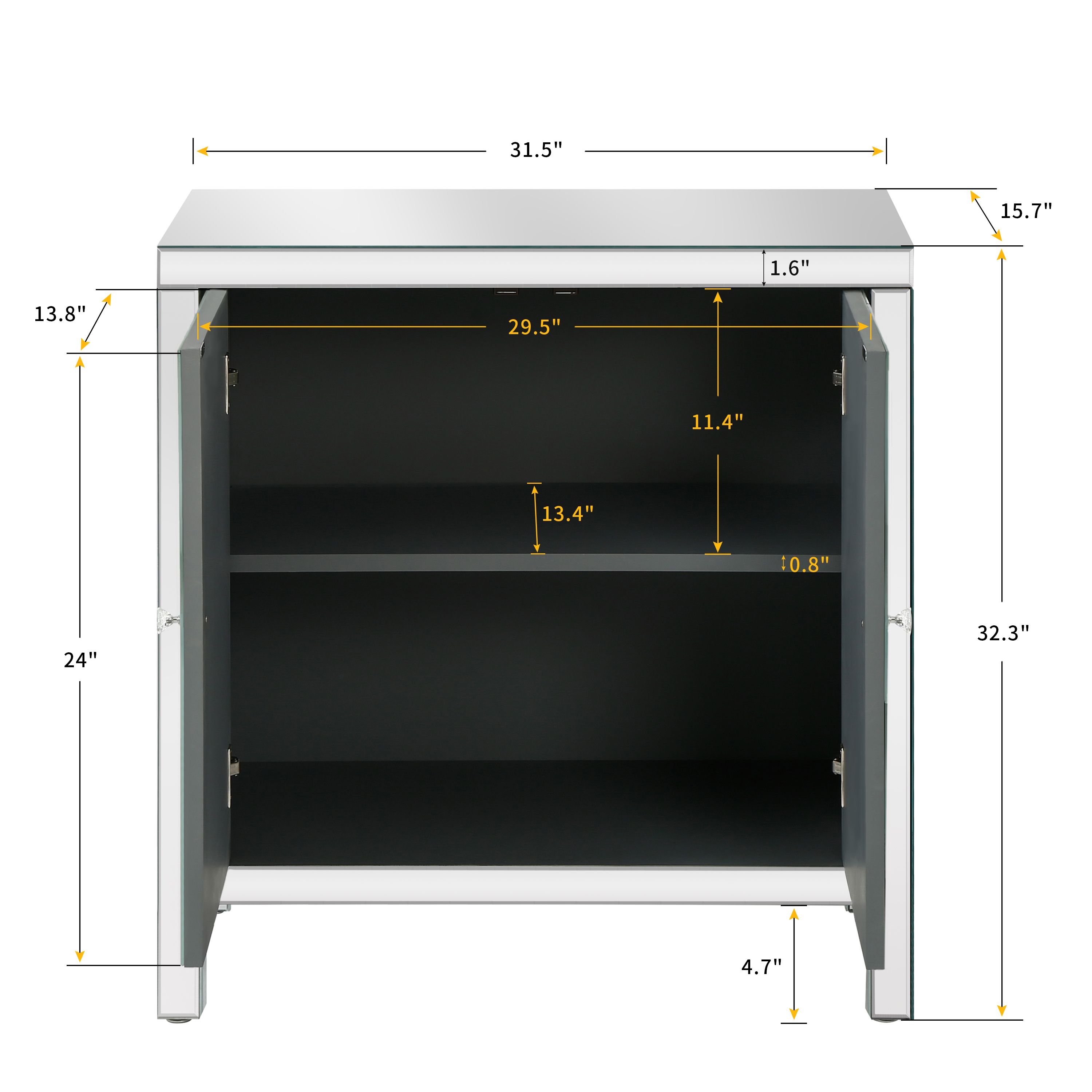 The body made of high grade MDF , the cabinet is highly durable with heightened stability. Two doors with The handle is crystal effect, make it easy to open and close the door