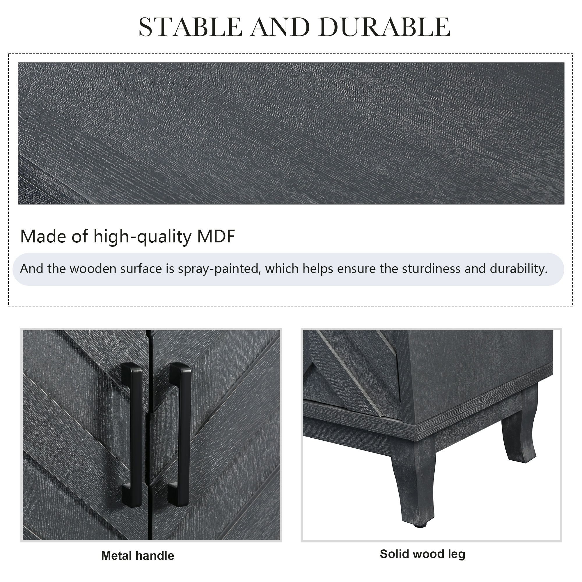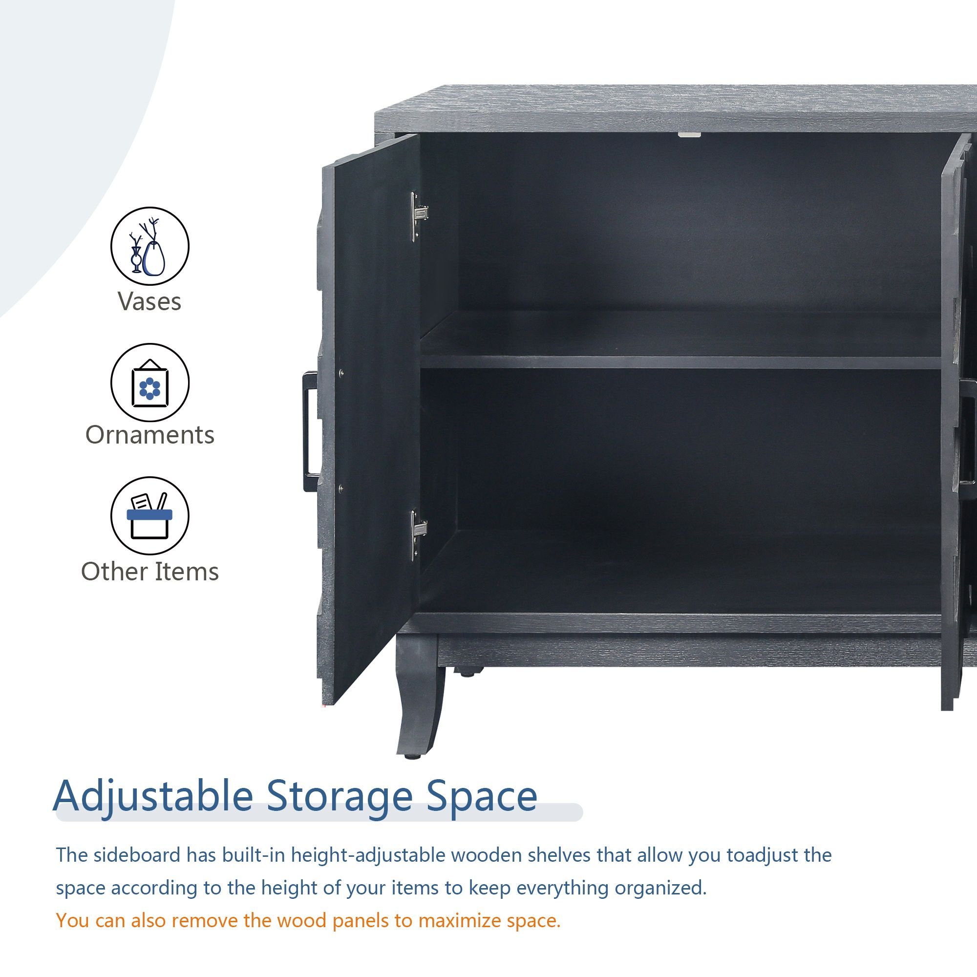 Our designers have combined aesthetics and practicality with a neat and smooth line as the main body with a unique striped door design to meet the aesthetic standards of every era. Perfectly match any home decor. It can be used as a console cabinet, a sideboard self-service server, or as an elegant storage cabinet