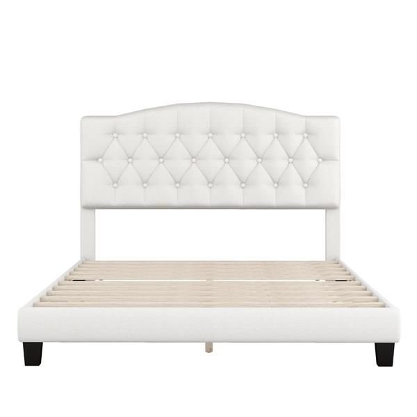 Upholstered Platform Bed with Saddle Curved Headboard and Diamond Tufted Details, Queen, Beige