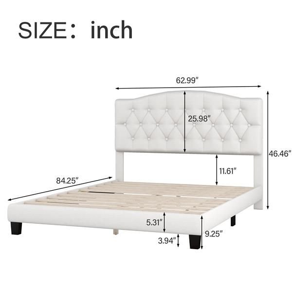 Home > Upholstered Platform Bed with Saddle Curved Headboard and Diamond Tufted Details, Queen, Beige